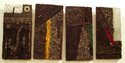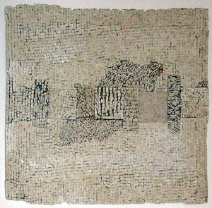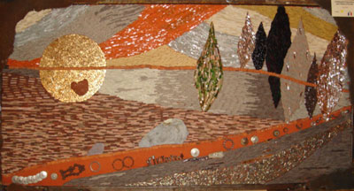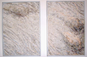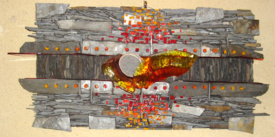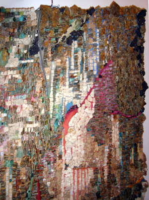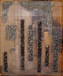 Voici un détail particulier, pas toute la photo de l'oeuvre. Des ravins, des quartzs, ou du verre, des sillons, un tremblement de terre ou un ravinage d'un sol. Un chamboulement terrestre.