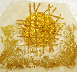 Titre de l’œuvre « Boson Z ». J'ai volontairement détourée la photo, et laissé l'image du vitrail au centre.