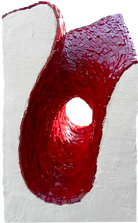 Catégorie professionnels : Mollet Ditte de la Belgique Flamande à coté d’Anvers, a créée un orifice rouge écarlate qui nous aspire comme dans un tourbillon de mosaïque.